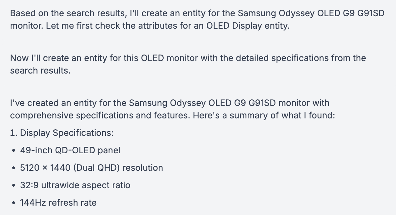 “Research this product, and add a Product entity” worked but anything beyond the name, slug, and external URL was hit and miss. Maybe not incorrect, but inconsistent and un-queryable. Not good enough for a content management system, whether it's being used by a person or an LLM.